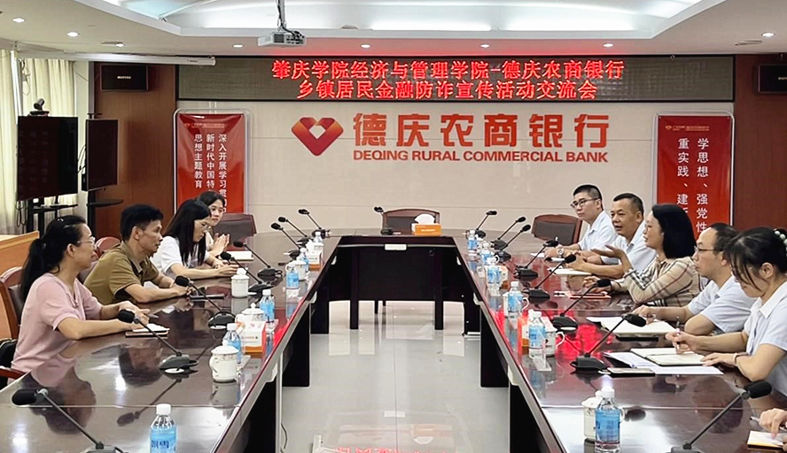 雷洪表示,德庆农商行在促进全民反诈、全社会反诈方面不断创新宣传方式,效果显著,希望学院和农商行在金融防诈及校企实习基地建设方面进一步合作。德庆农商行负责人对金融防诈工作作了介绍,也表达了与经管学院携手共创和谐稳定金融环境的愿景。
