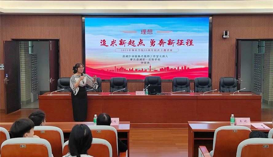 广东省“三八红旗手”、南粤优秀教师、肇庆鼎湖第一实验学校副校长钟丽燕校友,以《追求新起点,勇奔新征程》为题,结合工作实际和“厚德、明智、博学、力行”的校训精神,分享个人的成长故事。