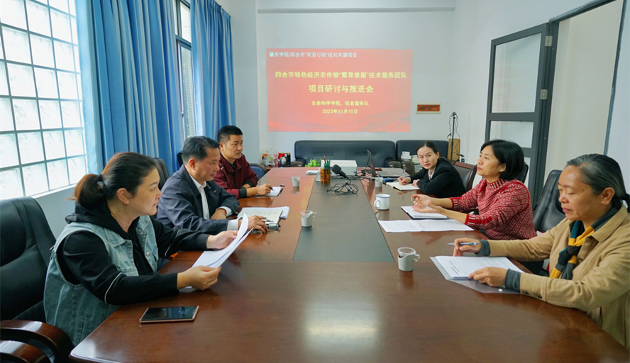本网讯 为加快推动“双百行动”结对共建意向项目在四会市落地立项,扎实做好项目调研对接前期工作,“双百行动”驻县服务队11月15日再次与生命科学学院深入研讨3个结对共建意向项目。生命科学学院党委书记胡隼,主持行政全面工作副院长、四会特色南药良种良法服务项目负责人邵玲,协同创新中心党支部书记、四会市砂糖橘产业振兴项目负责人吉前华,乡村规划与农村风貌建设服务项目副组长陈华参加了研讨活动。