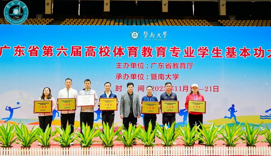 本网讯 11月20日,由广东省教育厅主办、暨南大学承办的广东省第六届高校体育教育专业学生基本功大赛落下帷幕,来自华南师范大学、暨南大学、广州体育学院等全省15所高校的300名体育教育专业本科生参加了此次比赛。我校代表队取得了团体二等奖、累计16个个人单项奖的优异成绩。