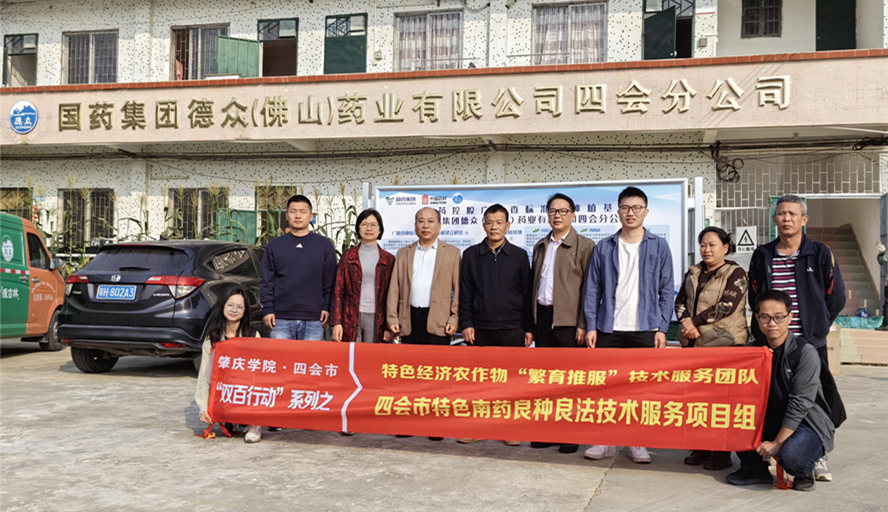 本网讯 11月23日,学校“双百行动”-“四会市特色南药良种良法技术服务”项目组深入下茆镇德众(佛山)药业公司、江谷镇开展现场会商和实地调研。项目组组长邵玲及其团队成员、校“双百行动”工作办公室副主任梁标参加活动。