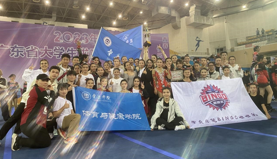 12月2日至3日,由广东省教育厅主办的2023年广东省大学生啦啦操锦标赛在华南师范大学举行。我校代表队努力拼搏,共获2金、2银、1铜,以及1个第七名。