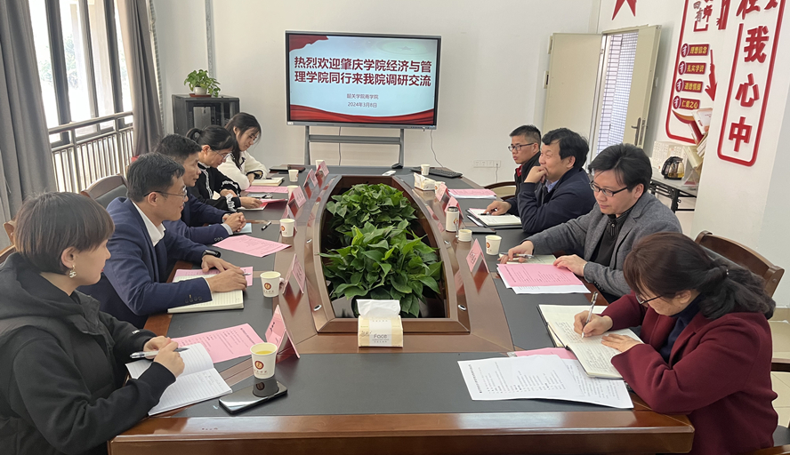 本网讯 3月8日,经济与管理学院副院长雷洪率领专题学习调研组一行6人赴韶关学院商学院开展学习调研活动。韶关学院商学院党委书记、院长付永,副院长应益华及相关教授、博士教师参加了交流座谈会。
