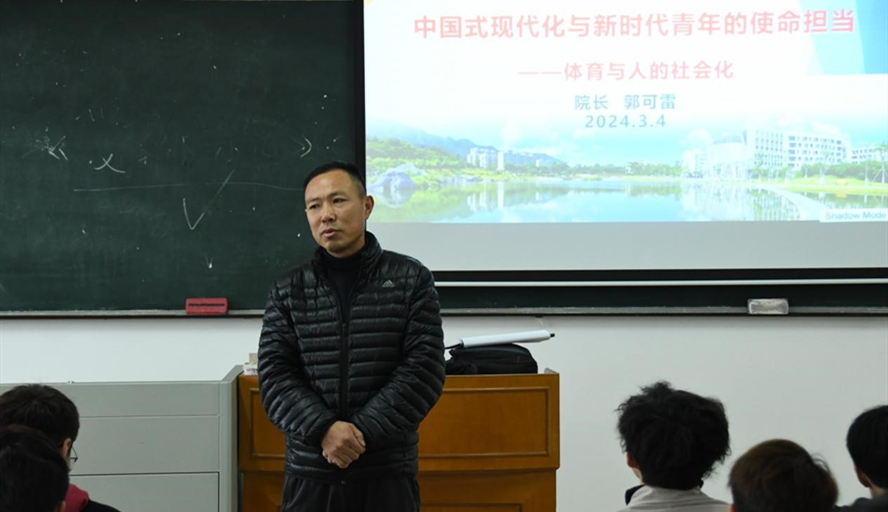 郭可雷结合体育专业实际情况为2022级的56名学生授课,对体育在人的全面发展和社会化进程中起到的重要作用进行了深入阐述。他指出,目前全国范围内体育教师的缺口高达十几万人,而偏远农村地区的体育教师短缺问题更加严重,作为体育教育专业的学生,应该主动承担起责任,努力学习专业知识,提升专业技能,未来到岗位上为培养更多出色的体育人才做出贡献。