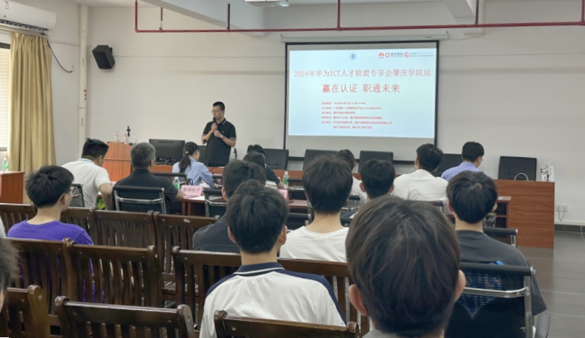 本网讯 4月17日,计算机科学与软件学院联合广东省新一代信息技术产业人才公共实训中心,举办了“2024年华为ICT人才联盟专享会万象城娱乐awc线路站”活动。活动由肇庆市人社局、肇庆高新区劳动和社会保障局指导,华为技术有限公司等机构的协办。活动以“赢在认证,职通未来”为主题,旨在通过校企合作,推动信息通信技术人才(ICT)的培养与发展,并为学生和用人单位搭建沟通桥梁,增加毕业生的就业机会。