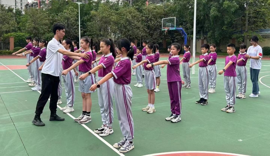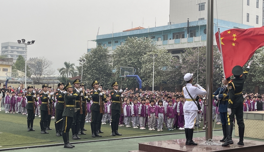本网讯 4月15—16日,国旗护卫队受邀前往肇庆市第十六小学明月校区和宝月校区开展升旗仪式,并为该校国旗班开展业务培训。