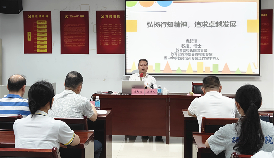 本网讯 为加强师范专业学生对教育工作的理解,4月19日,副校长肖起清以《弘扬行知精神,追求卓越发展》为题,为文学与传媒学院师生讲授“思政第一课”。
