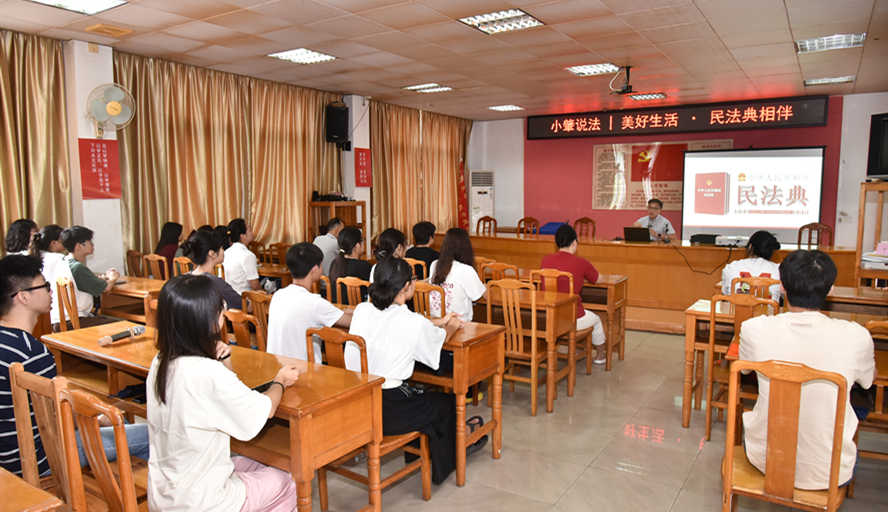 本次活动以专题宣讲和走访宣传相结合的形式开展。肇庆市普法讲师团、校法规科干部黎炳潮以民法典颁布4周年之际作主题专讲,强调《中华人民共和国民法典》的重要地位和编纂《民法典》的重大意义,并通过问答引发学生对法律知识的思考,进一步加深了学校师生对于《民法典》的认识和理解,推动法律知识的普及。