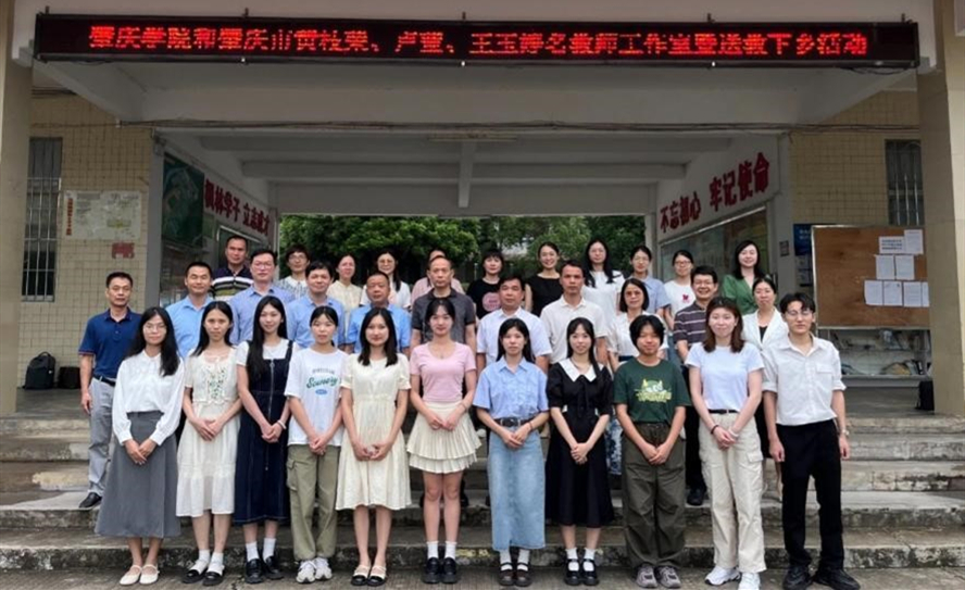本网讯 为推进“百千万工程”,提高乡村教育质量,5月29日,文学与传媒院和肇庆市黄枝荣、卢莹、王玉婷名教师工作室在怀集县凤岗中学联合开展送教下乡活动。院长杨红军,张志帆副教授等文传学院教师,以及全体硕士研究生参与此次活动。