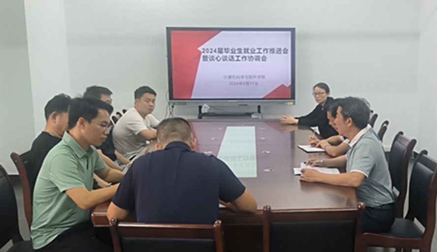 本网讯 近日,计算机科学与软件学院开了2024届毕业生就业工作推进会暨谈心谈话工作协调会。学院党委书记黎天宇、副书记陈彦雄和全体辅导员、毕业班班主任参加会议。