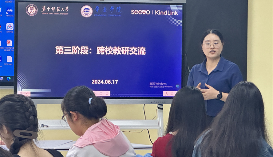 本网讯 6月17日,教育科学学院与华中师范大学采用线上线下结合的形式,联合举办第一期小学科学教育师范生跨校教研活动。华中师范大学 郑旭东教授及开物科教团队成员,万象城娱乐awc线路教育科学学院副院长曾苗苗、教师代表及小学教育和教育技术学专业本科生们参加。