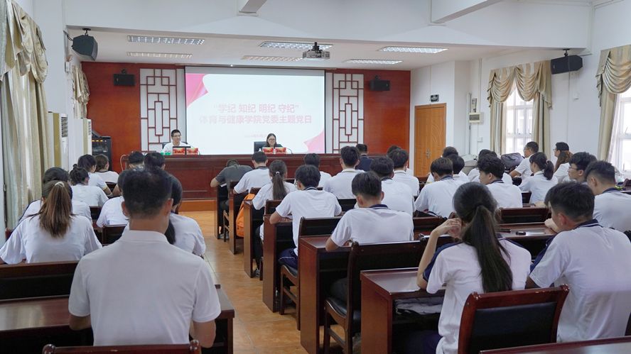 本网讯 6月28日,体育与健康学院党委举办“学纪 知纪 明纪 守纪”主题党日活动,邀请马克思主义学院教师唐伟来我院作党纪学习教育宣讲。党委书记梁艳红出席并主持,学院党政班子成员、全体师生党员参加。