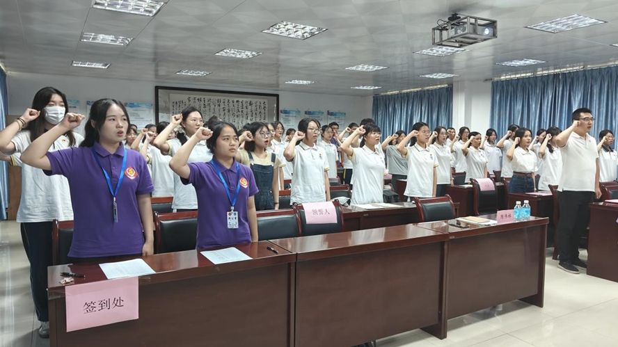 预备党员宣誓大会上,19名新党员面向鲜红的党旗宣誓,表达了为共产主义事业奋斗终身的决心。学院党委书记陈伟林结合党纪学习教育关于严明组织纪律的专题,为同学们上党课,希望广大学生党员不断加强党性修养、增强纪律观念、提升思想觉悟,争做新时代有为青年。