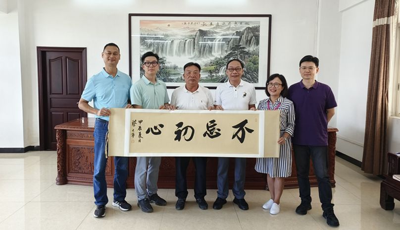 本网讯 近日,校友会、基金会秘书长周建文带领秘书处一行前往江门市华源投资发展有限公司走访杰出校友李伟添董事,活动特别邀请省人大代表、学校侨联主席、旅游与历史文化学院黎达文副教授一同参加。