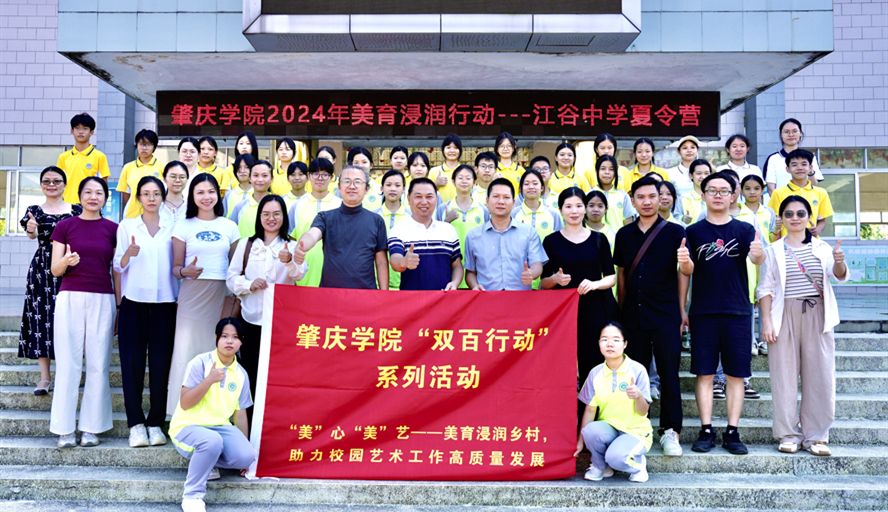 本网讯 为扎实推进学校“双百行动”工作落地见效,助力乡村美育发展,7月6日美术学院、设计学院组织相关师生团队赴四会市乡镇学校开展美育浸润活动。校教务部副部长吴亮、科学技术部副部长杨国杰,美术学院学院院长李小军参加了活动出征仪式。