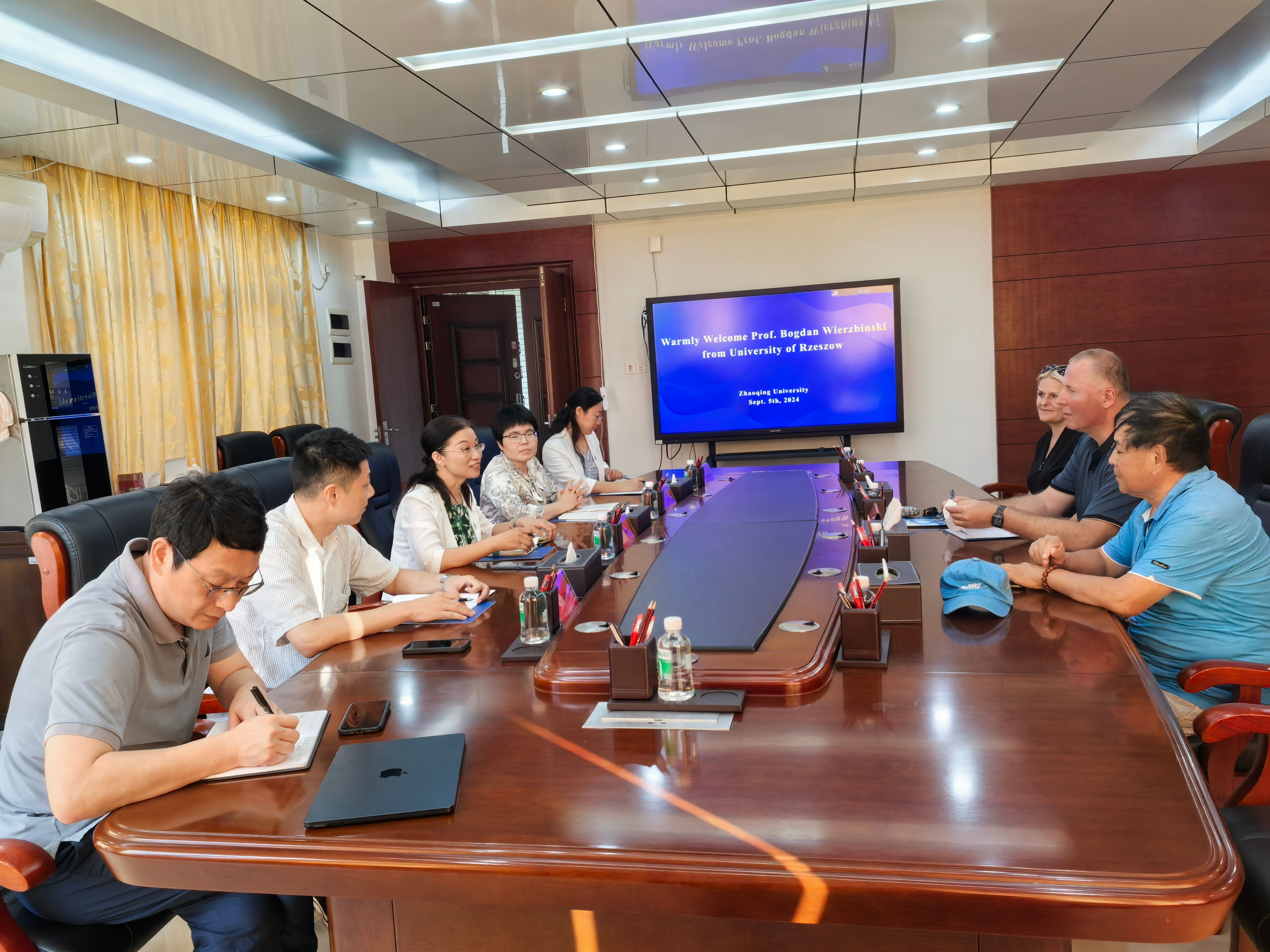 本网讯 9月5日下午,波兰热舒夫大学人文学院院长Bogdan Wierzbinski教授一行来访我校,与对外交流合作部、政法学院、外国语言文化学院相关负责人交流座谈。