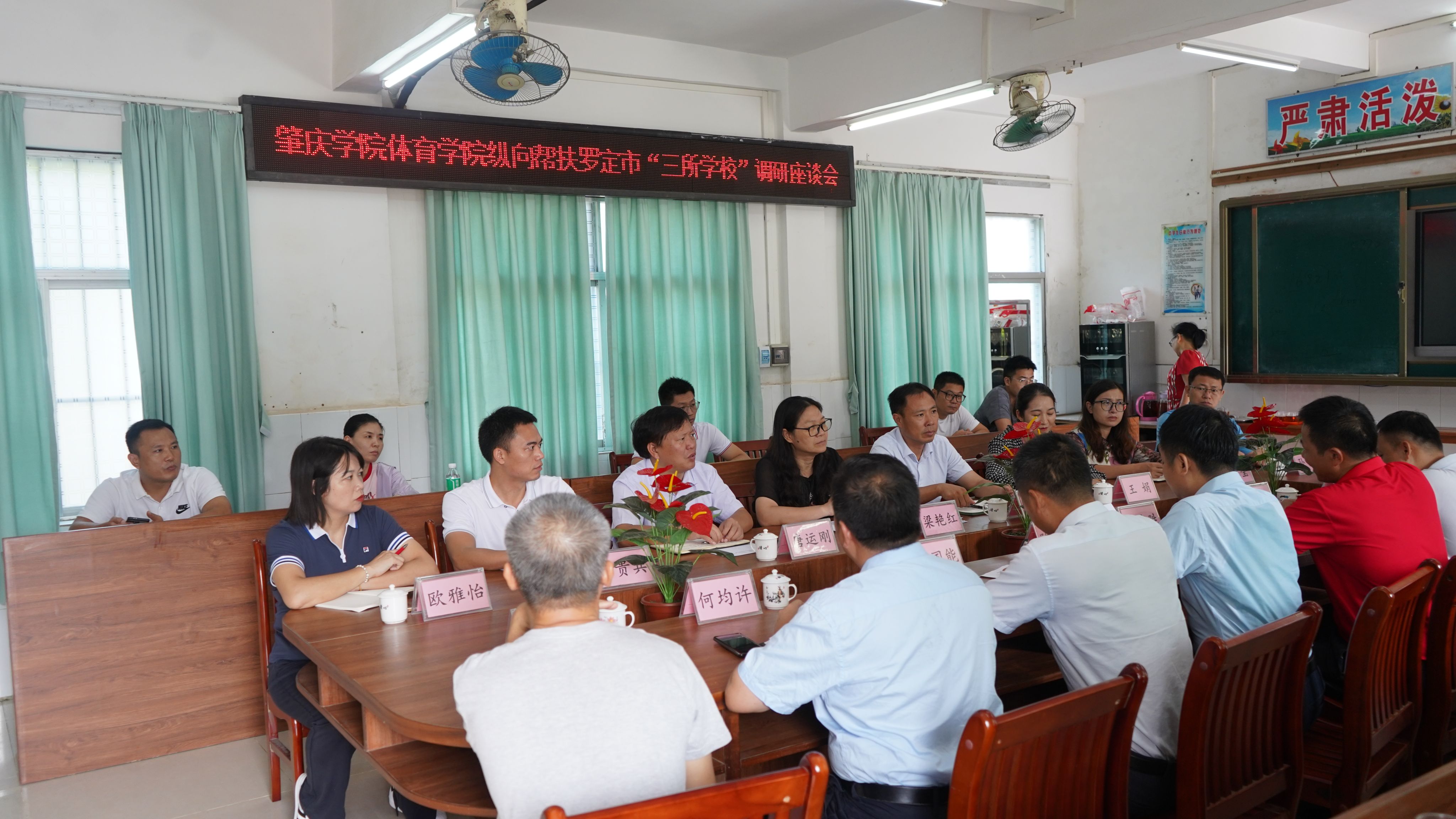 本网讯 9月29日上午,万象城娱乐awc线路体育与健康学院纵向帮扶罗定市“三所学校”调研座谈会在罗定市连州镇举行。连州镇党委副书记、镇长陈为灿出席,连州镇人大副主席王国能主持,各中小学校长、幼儿园园长等参会。体育学院院长郭可雷、党委书记梁艳红带同领导班子及帮扶教师团队一行14人参加座谈。