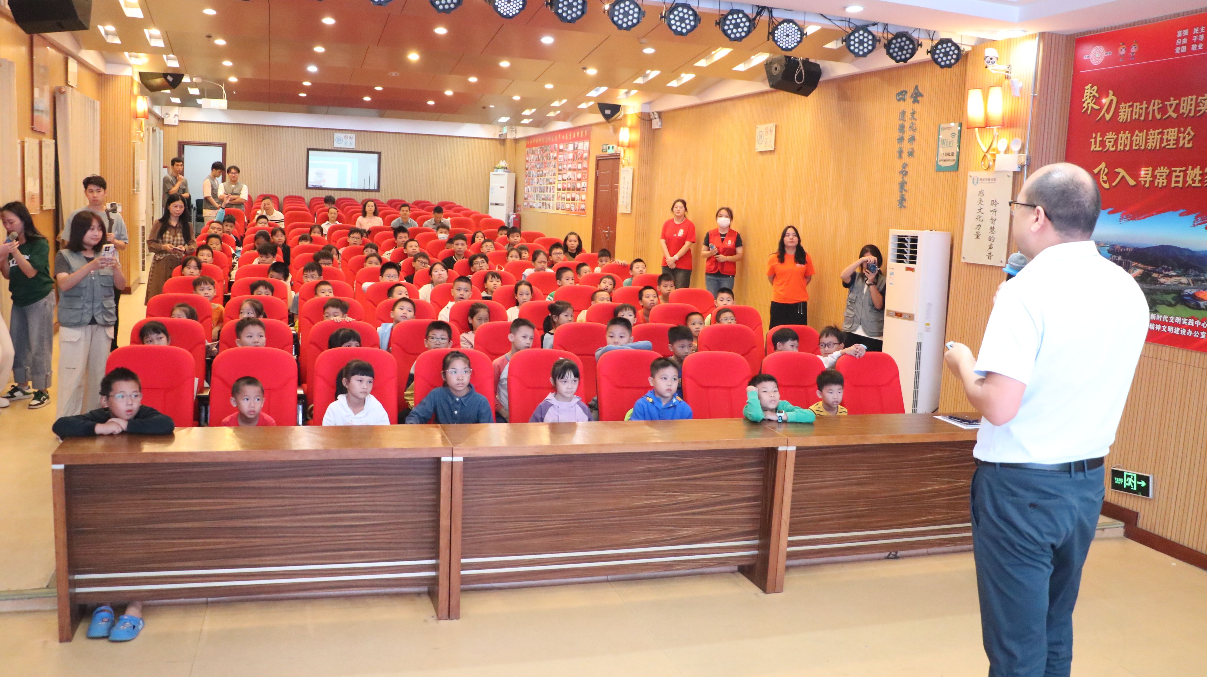 此次活动以“走近机器人,点燃科技梦”为主题,向参会的100余名小朋友展示了智能视觉人形机器人、仿生机械手臂、AI视觉机械臂、四足机械狗四款机器人。智能视觉人形机器人可通过人脸识别功能与参观人员互动,还演示了鞠躬、跳舞和自动踢球等本领,吸引在场小朋友热情互动。