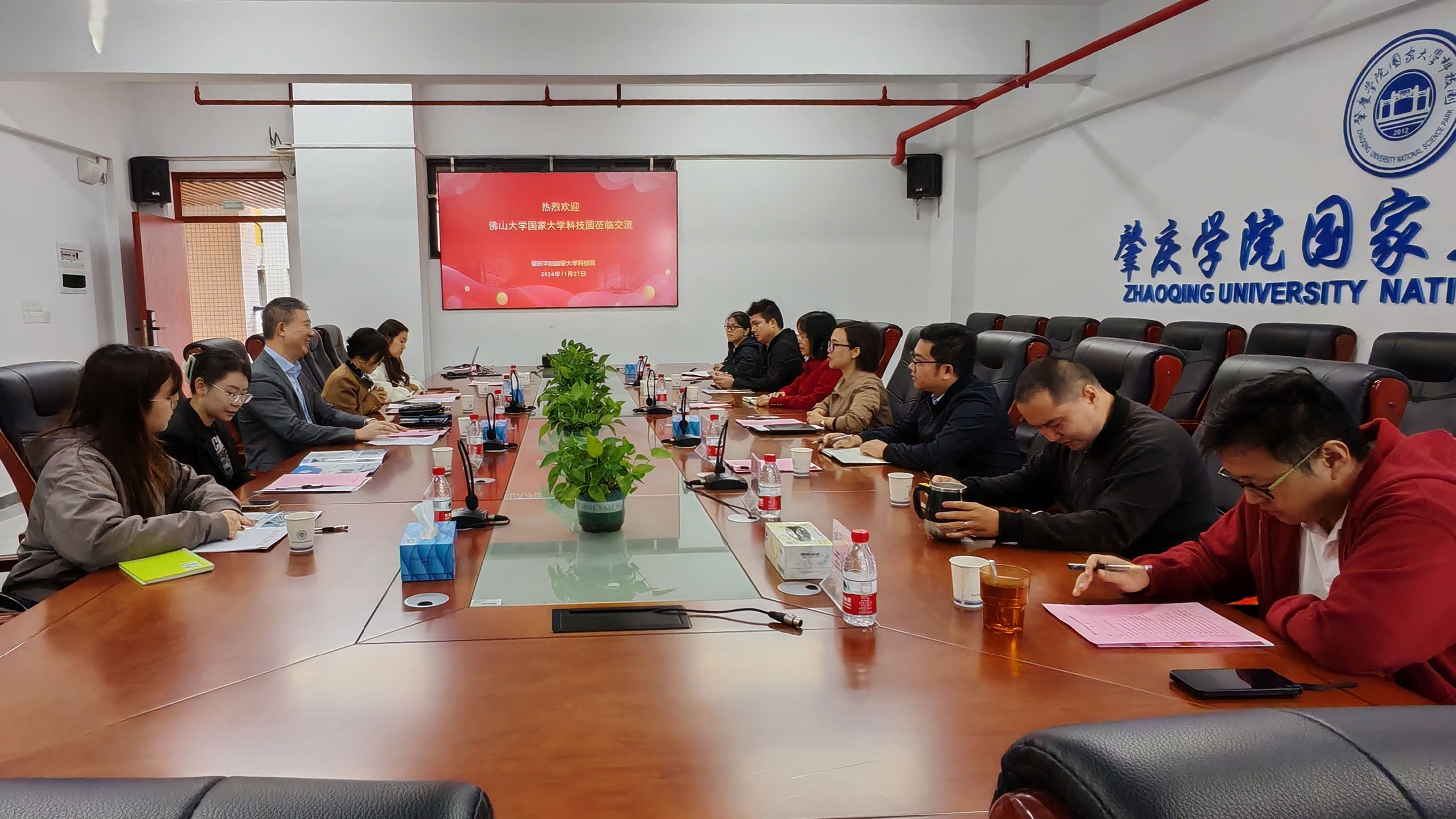 本网讯 11月27日,佛山大学国家大学科技园主任陈宏武一行5人莅临我校国家大学科技园,参观展厅并开展座谈交流。