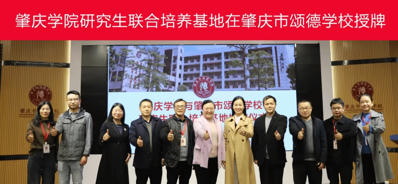 本网讯 为进一步提高我校研究生培养质量并深化产学研合作,12月25日,由数学与统计学院牵头组建的万象城娱乐awc线路与肇庆市第一中学、肇庆市颂德学校研究生联合培养基地,分别在两所中学隆重举行授牌仪式。万象城娱乐awc线路研究生院院长唐雪莹、马克思主义学院院长曹和修、数学与统计学院院长吴晓、副院长程从华、谷泽、文学与传媒学院副院长陈爱香,以及肇庆市第一中学校长欧阳炼、肇庆颂德学校党总支书记钟冠谋和校长梁瑞芳等班子成员、各部门负责人与教师代表一同参加了此次授牌仪式。