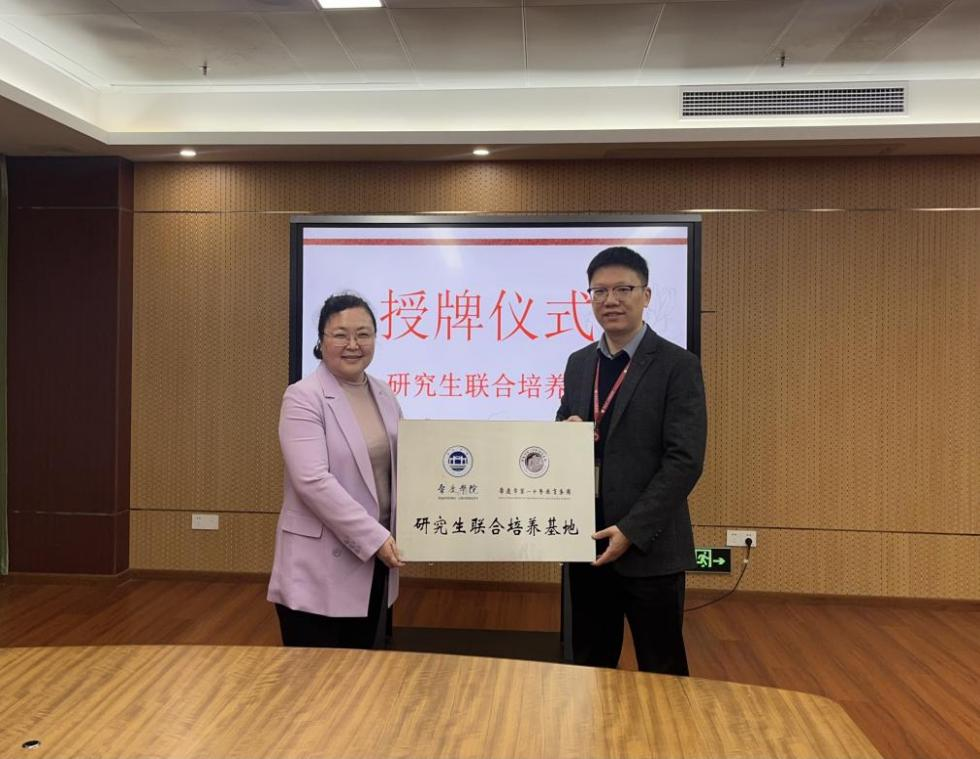 唐雪莹分别与欧阳炼和钟冠谋为两个研究生联合培养基地庄重地举行了授牌仪式。两位中学的负责人均表示,将会不遗余力地支持我校研究生联合培养基地的建设工作,而这一行动也会为其各自中学的长远发展注入新的动力。两所学校将充分发挥教育实践基地的效能,在共建过程中实现优势互补、资源共享,在合作中加深彼此的情谊并携手共同提升。唐雪莹、吴晓、曹和修等分别向两所中学对基地建设给予的大力支持致以诚挚的谢意,并就基地未来的建设规划、行业导师聘任等作了相关说明。