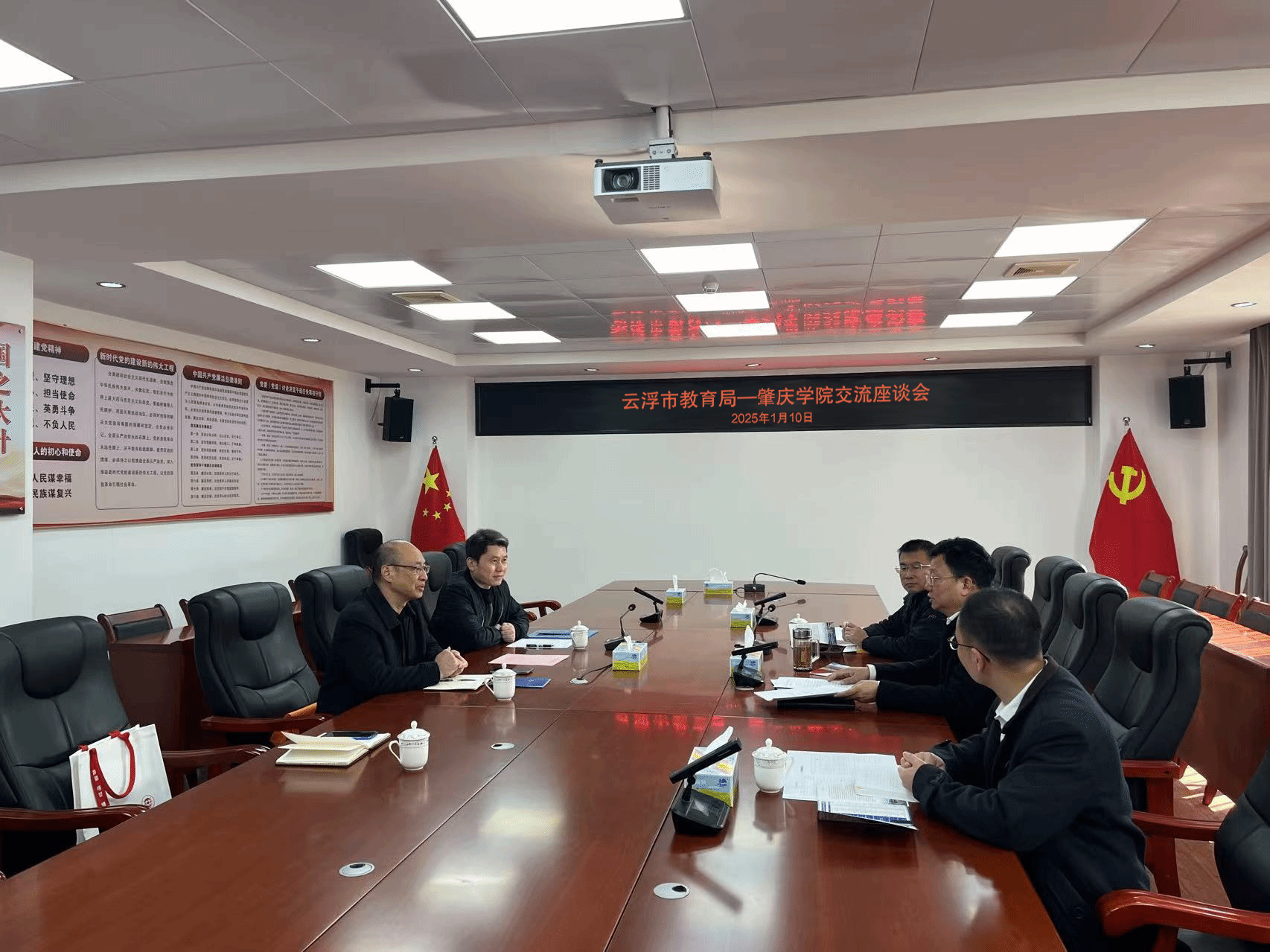 本网讯 1月10日,学生工作部(招生与就业指导中心)一行3人到云浮市教育局开展教师招聘毕业生就业系列专题调研,云浮市委教育工作领导小组办公室主任、市委教育工委书记、市教育局党组书记、局长吴月德,市委教育工委副书记,市教育局党组成员、副局长何文通等参加调研交流。