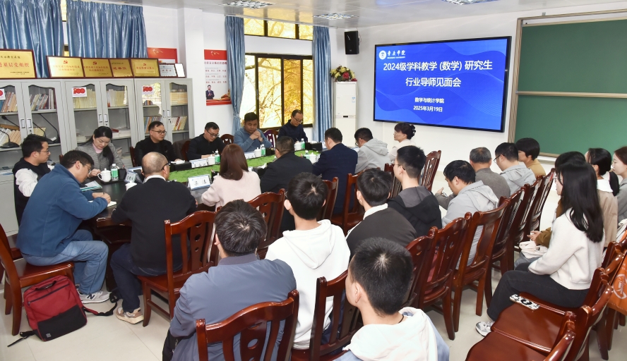 本网讯 3月20日,数学与统计学院举办了2024级学科教学(数学)硕士研究生与行业导师双选会。肇庆市颂德学校党委书记钟冠谋、宣卿中学副校长王政等10名行业导师,学院院长吴晓、副院长谷泽、2024级学科教学(数学)全体研究生导师和学生参加此次双选会,副院长程从华主持。