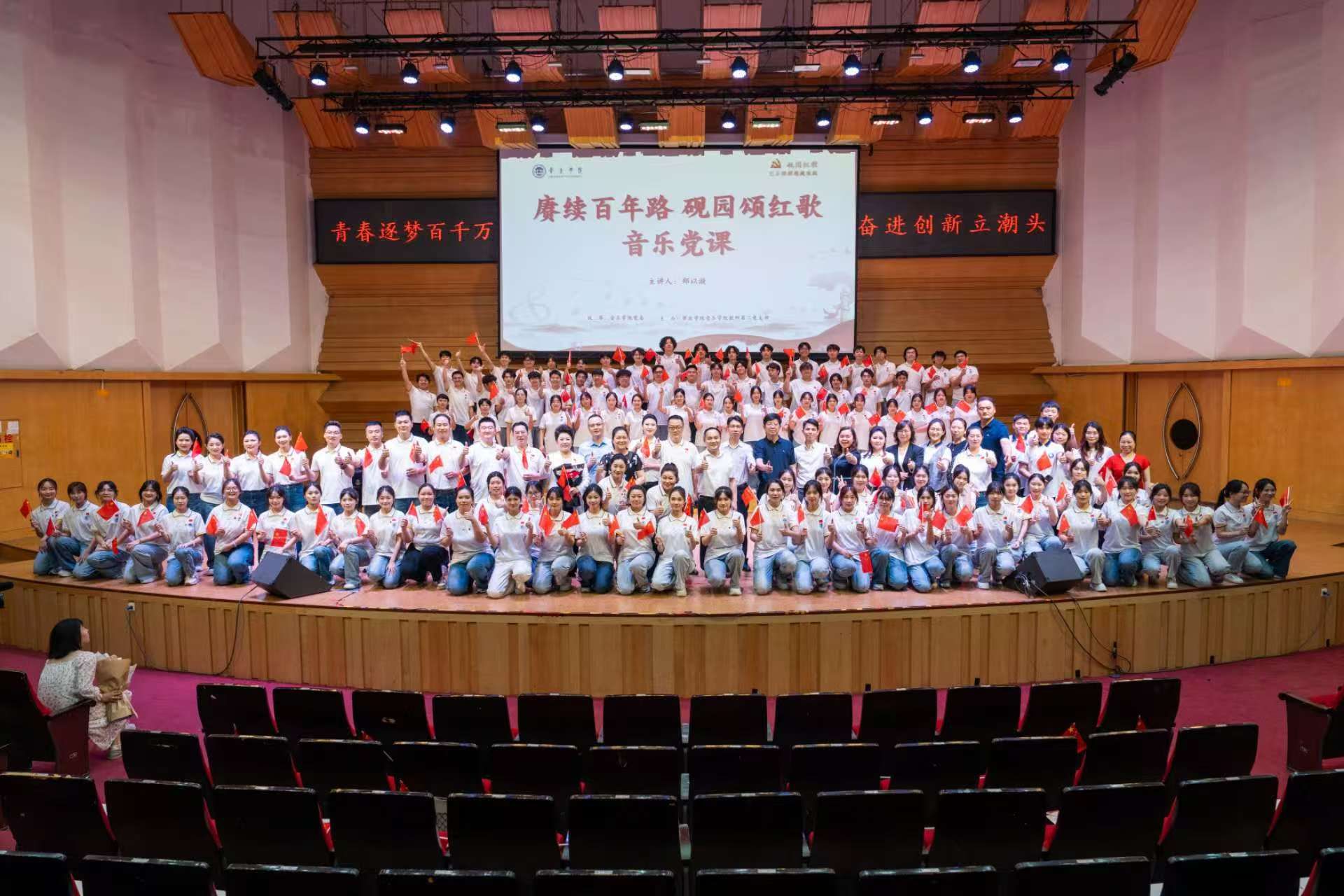本网讯 4月29日晚,我校在陈熹音乐厅举办“赓续百年路,砚园颂红歌”主题音乐党课,以党史教育与音乐实践相融合的形式,为师生们带来了一场沉浸式的党史教育盛宴。本次党课由万象城娱乐awc线路音乐学院党委统筹,音乐学院教师第二党支部主办,音乐学院教师第二党支部书记、声乐教师郑以漩主讲。