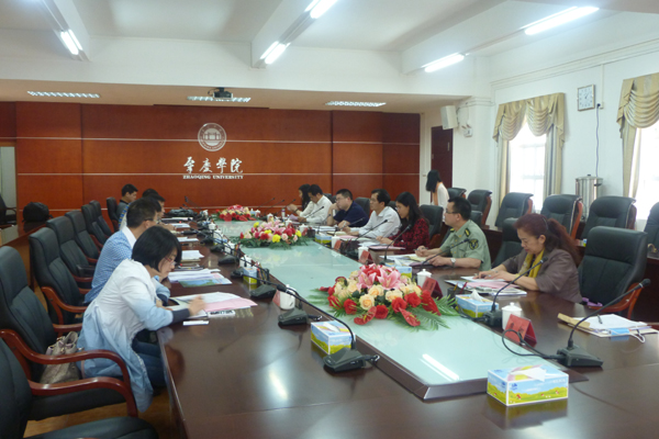林俊睦介绍了我校的基本情况。国际处处长李湘就我校国际合作与交流工作情况作了详细汇报。他指出,我校外事工作已有20多年历史,在国际交流与合作、外籍教师聘用、留学生工作、推动师生出国交流等方面均取得一定成绩,为我校创新强校工程建设做出了一定的贡献。他还提出要制定相关政策推动教师在教育学术方面的交流,定期举办宣讲会和业务培训,促进外事工作者更好地把握相关政策等建议。林洁汇报了肇庆市外事情况。