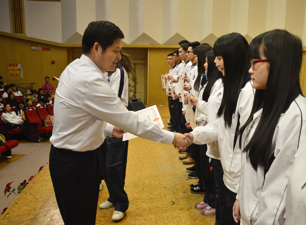 学生处处长陈向荣对我校2014年国家奖助学金的工作作了详细汇报,周苏平宣读了国家奖助学金表彰决定。随后,曾桓松、周苏平分别为获得国家奖助学金的学生及学生代表进行颁奖。