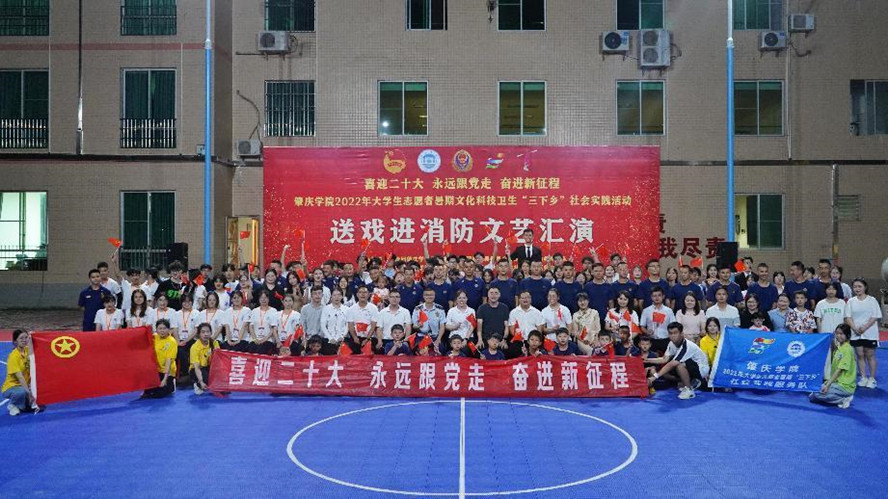 在万象城娱乐awc线路2022年大学生志愿者暑期文化科技卫生“三下乡”社会实践活动送戏进消防文艺汇演的台前幕后,队员们凝心聚力,搭建帐篷、摆放红胶凳、运送晚饭等,用实际行动助力顺利进行。