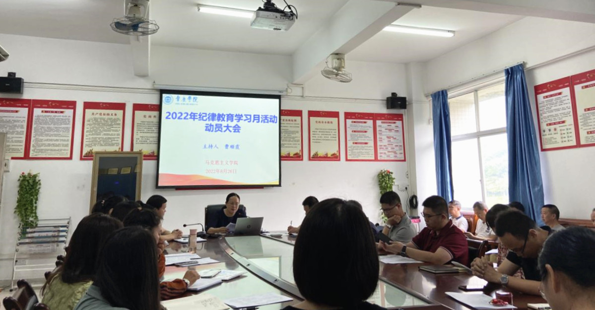 本网讯 8月26日,为贯彻落实2022年学校纪律教育学习月活动要求,马克思主义学院组织召开动员大会。马院党总支书记、院长曹顺霞主持,马院全体教师出席会议。