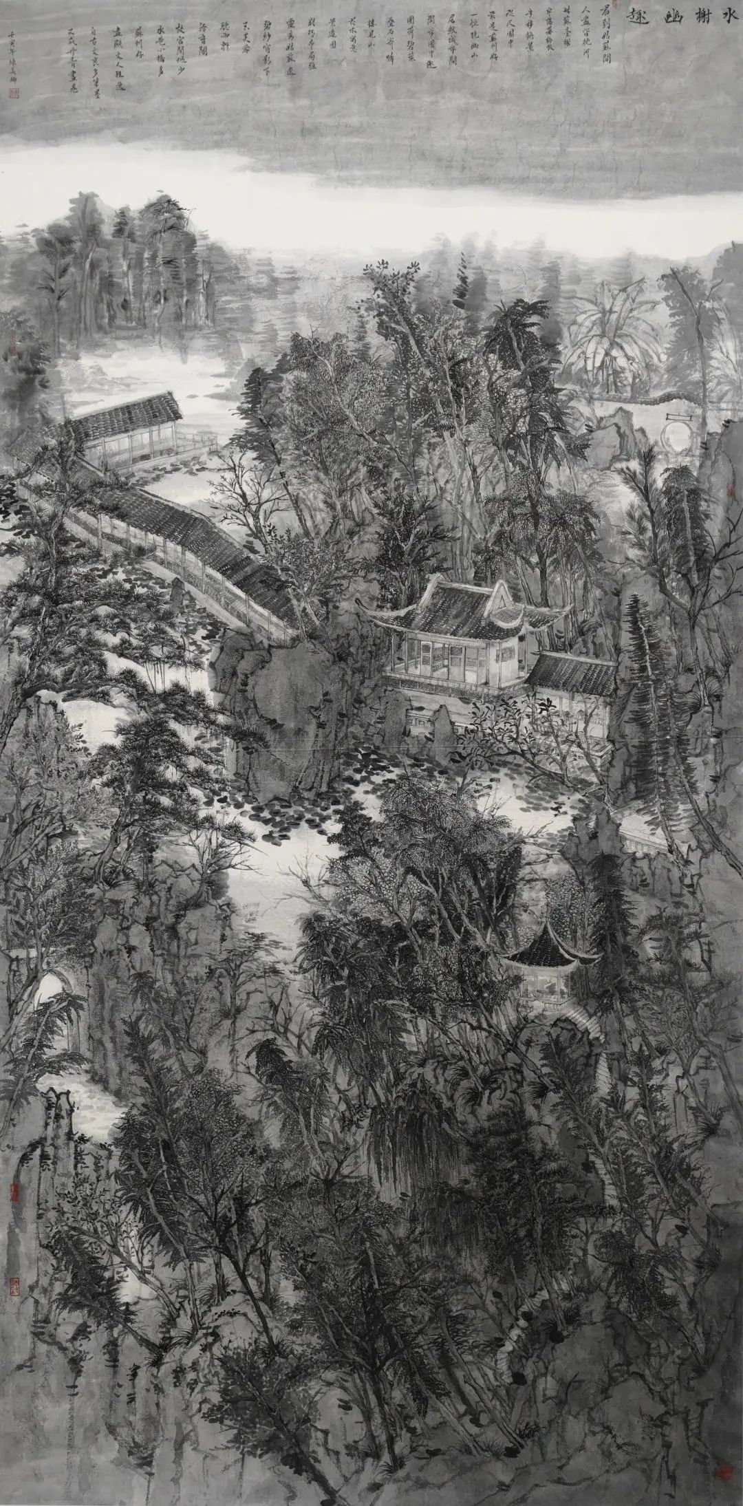 练美娜《水榭幽趣》 国画山水  248cm*129cm   (2022)  指导老师:郜笑寒