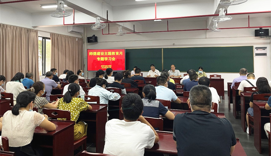 本网讯 9月21日,数学院党委书记杨帆主持召开师德建设主题教育月专题学习会,院长朱智伟出席,学院全体老师参加。