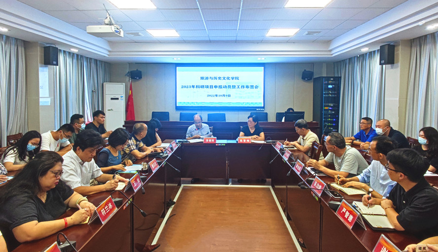 本网讯 近日,旅游与历史文化学院认真落实学校科研项目申报工作会议精神,组织召开2023年科研项目申报动员布置会。李朝军院长主持,院党委书记杨雪梅出席,全体教师参加。