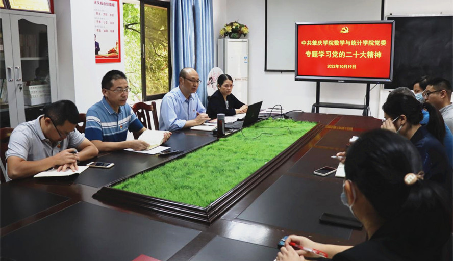 本网讯 10月19日,数学院党委召开理论学习中心组(扩大)会议,专题学习党的二十大精神,学院党委书记杨帆领学,党政班子成员、系部主任、党支部书记结合自身业务工作实际,交流心得体会。