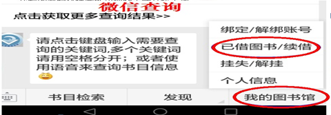 方式二:关注图书馆微信公众号,也可对个人借阅记录进行查询。