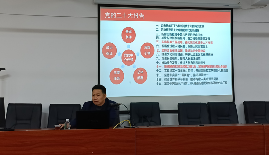 本网讯 12月14日,计算机学院邀请肇庆市委党校副校长、党的二十大精神市委宣讲团成员郑东升作宣讲,全院教师参加。