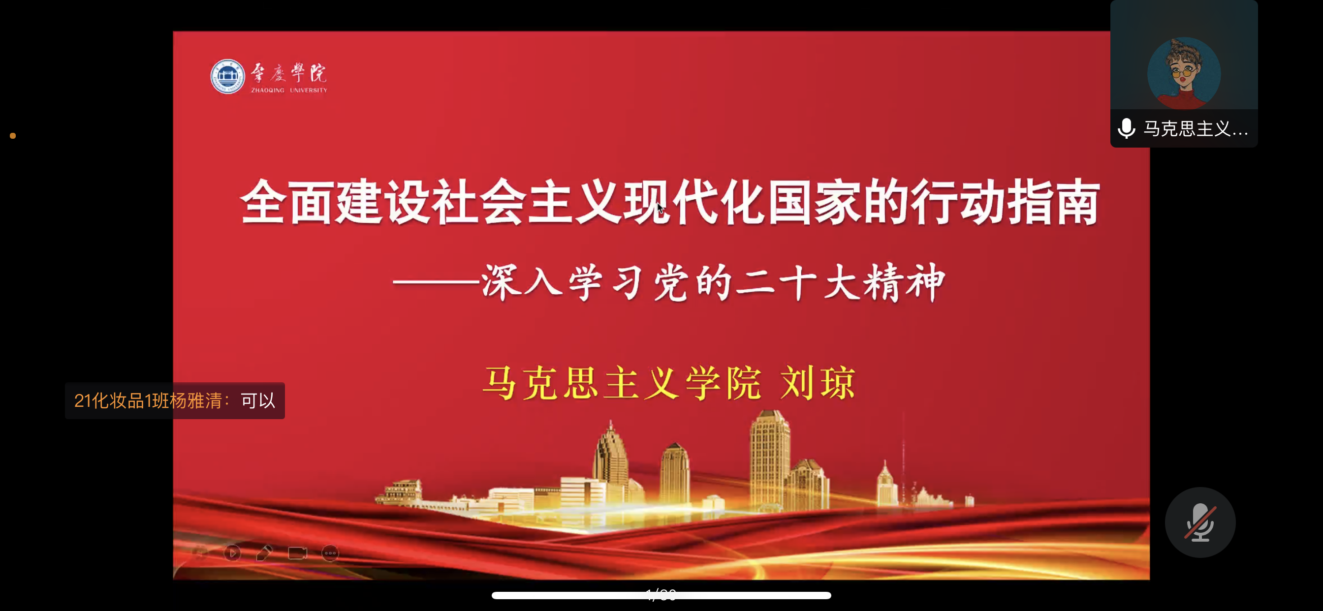 本网讯 12月14日,环境与化学工程学院师生党员、入党积极分子共220人同上一节“云思政课”,跟随学校党的二十大精神宣讲团成员、马克思主义学院教师刘琼从基本条件、思想引领、总体谋划、具体部署、政治保证五个要点深入学习“中国化时代化的马克思主义行”这一重大论断,切实体会党的二十大报告的深刻思想魅力。