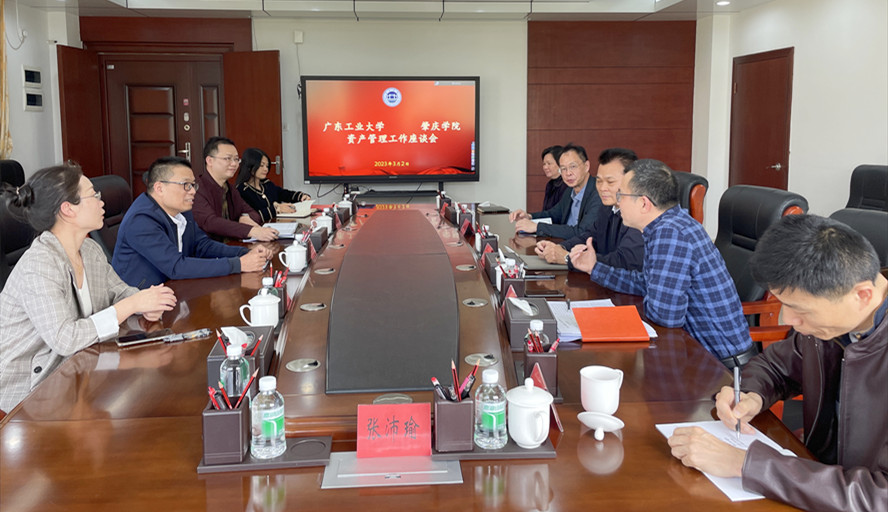 本网讯 3月2日,广东工业大学国有资产管理办公室主任洪伟强一行4人到我校交流资产管理工作。广东工业大学帮扶工作队队长刘怡军、资产管理处处长毛致光、副处长赵金等参加座谈交流。