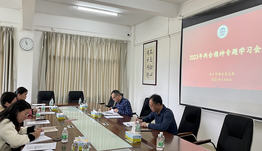 本网讯 3月6日,资产管理处党支部在行政楼第四会议室召开学习会,认真学习2023年全国“两会”精神。支部全体党员参与会议,会议由党支部书记毛致光主持。