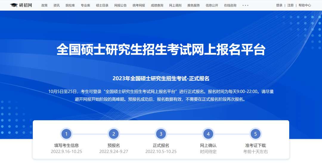 2023年全国硕士研究生招生考试,开始正式报名!10月5日—10月25日,每天9:00—22:00,暂未报名或预报名未成功的同学,请在此期间完成报名,以便顺利参加今年的研究生考试!