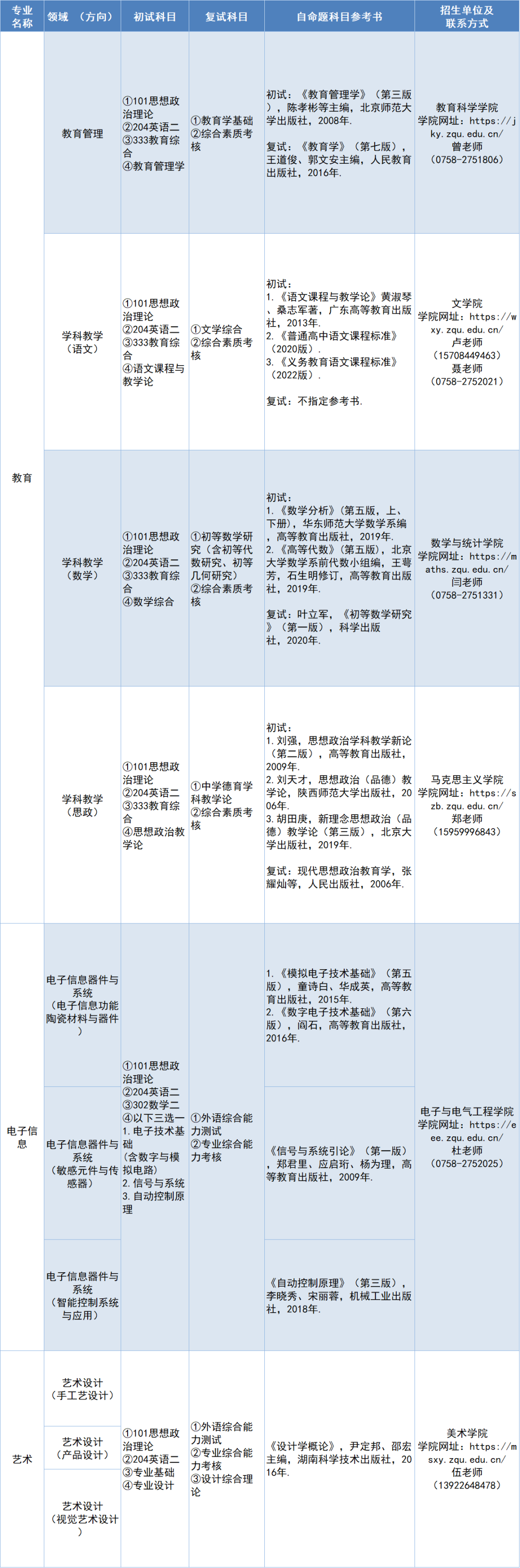 我校2023年教育(0451)的学科教学(语文)、电子信息(0854)的电子信息器件与系统(智能控制系统与应用)、艺术(1351)专业有招收报考“退役大学生士兵”专项计划。