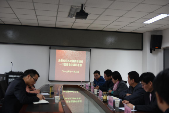 胡其云副书记对魏明一行表示热烈欢迎,并就学院农林现有技术和资源,大师工作室的建设规划,志愿服务内容等方面做了总体介绍。各系部、相关部门负责人就相应的考察内容与来宾一行做了深入交流和探讨,并商定近期前往苏湾镇进行实地考察。