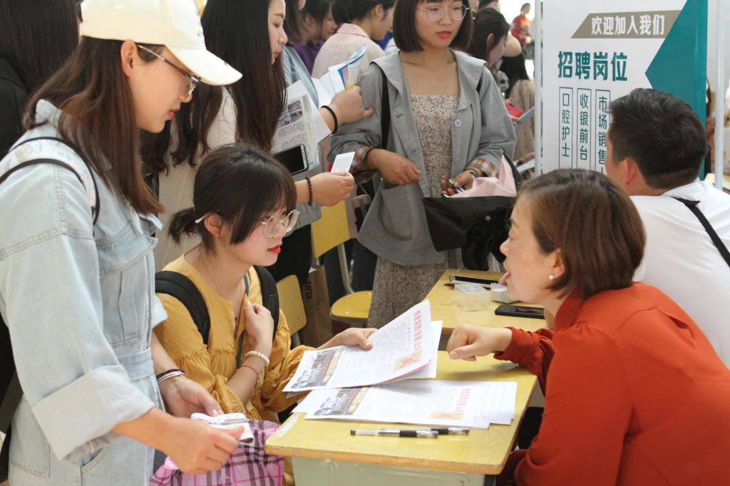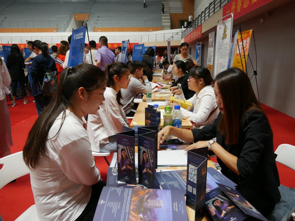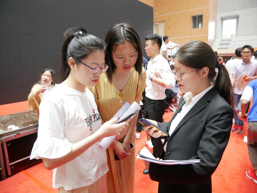 本次招聘会吸引了安徽大胜投资管理有限公司、安徽坤政建筑工程有限公司、安徽青松食品有限公司、安徽名流健康管理有限公司、合肥白领安琪儿妇产医院有限公司、奇瑞汽车股份有限公司、合肥京东方光电科技有限公司、安徽饭店、安徽元一大酒店有限公司、合肥元一希尔顿酒店等近500家用人单位入馆招聘,其中80%以上是合肥区域企业。伟德官网2019届毕业生和即将以实习带就业的大二学生共约4500人参加了应聘洽谈活动。
