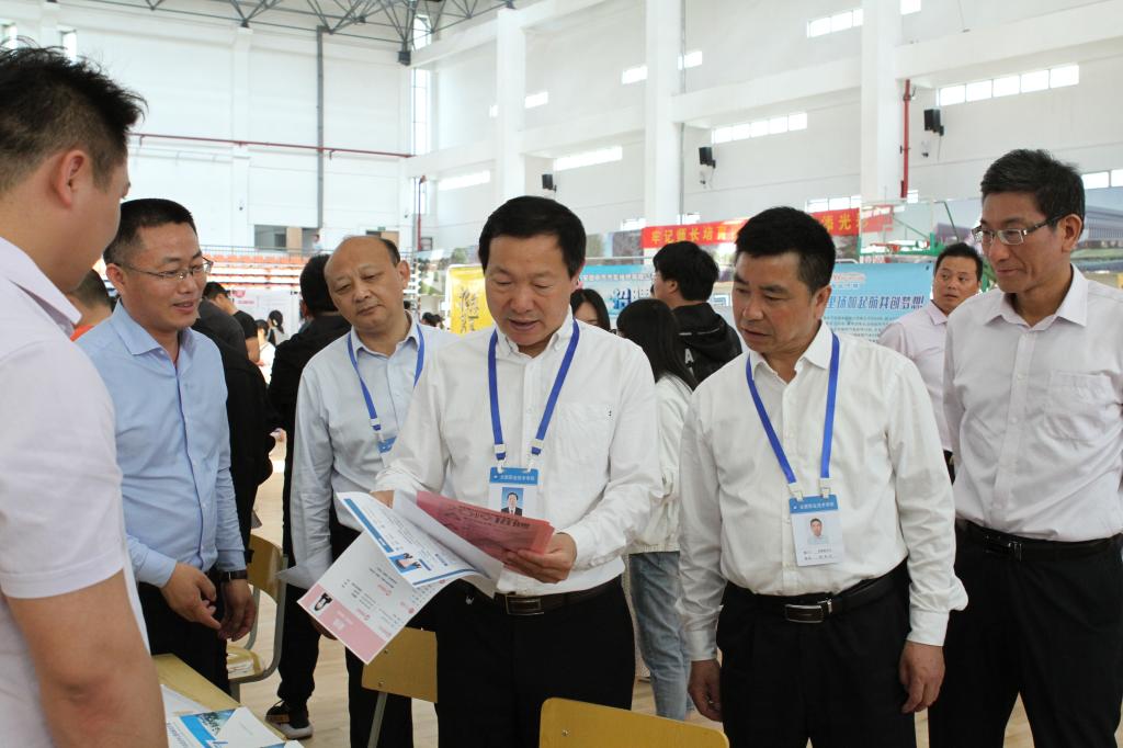 安徽省人社厅就业促进处处长吕泉、省教育厅大中专毕业生就业指导中心主任袁江林、合肥市人社局公共就业人才服务管理中心副主任李方成等来宾在学校领导的陪同下亲临招聘会现场,看望用人单位代表并和参加就业市场的学生进行亲切的交流。(供稿:学生处 编辑:朱鹏飞)
