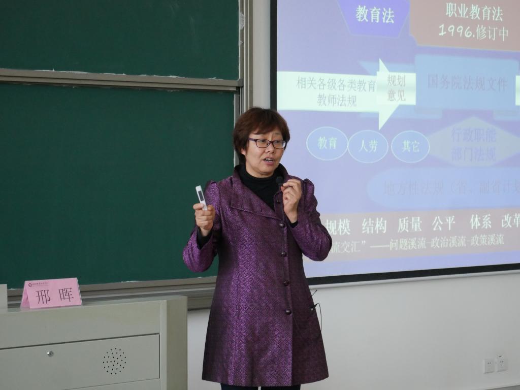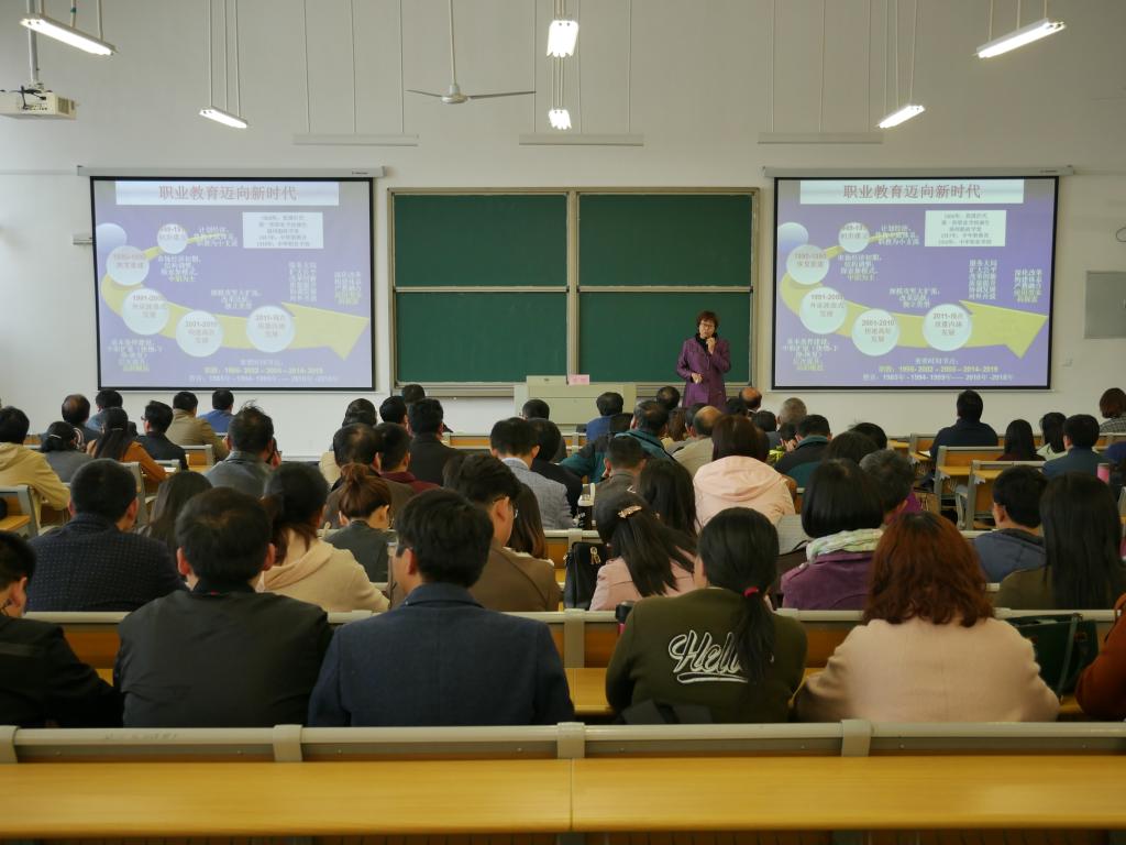 4月12日下午,国家教育行政学院学术委员会主任、教育行政教研部主任、职业教育研究中心主任邢晖教授应邀来伟德官网作题为《高等职业教育新号角新策略》主题报告。报告会在伟德官网汇心湖校区北教学楼101教室举行。伟德官网各部门、各二级学院党政正副职负责人,教研室主任,汇心湖校区全体无课教师聆听了报告,报告会由副校长周晓隆主持。