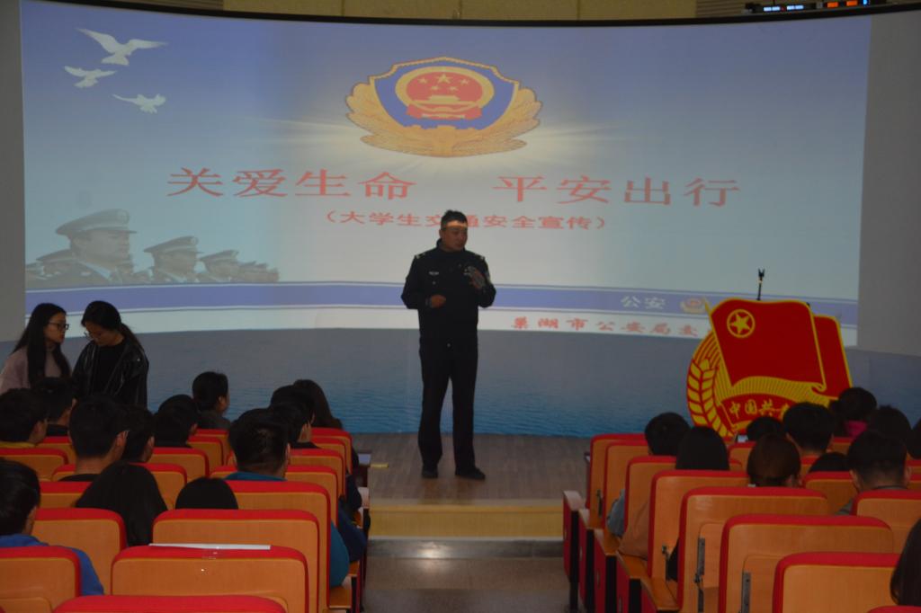 为深入有效开展交通安全教育活动,进一步加大交通安全宣传力度,提高广大师生的交通安全意识和自我保护意识,近日,伟德官网团委邀请巢湖市交警大队队长唐栋超为伟德官网学生开展交通安全知识讲座。