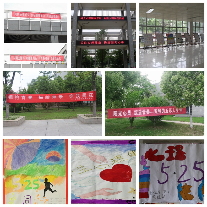 校园主题宣传活动通过悬挂条幅“呵护心灵成长,张扬青春魅力,传递心理正能量”“与阳光做伴,和健康同行;与青春对话,让梦想启航。”和各二级学院宣传栏围绕心理健康主题制作宣传报进行宣传,在校园营造关爱心理健康活动氛围。