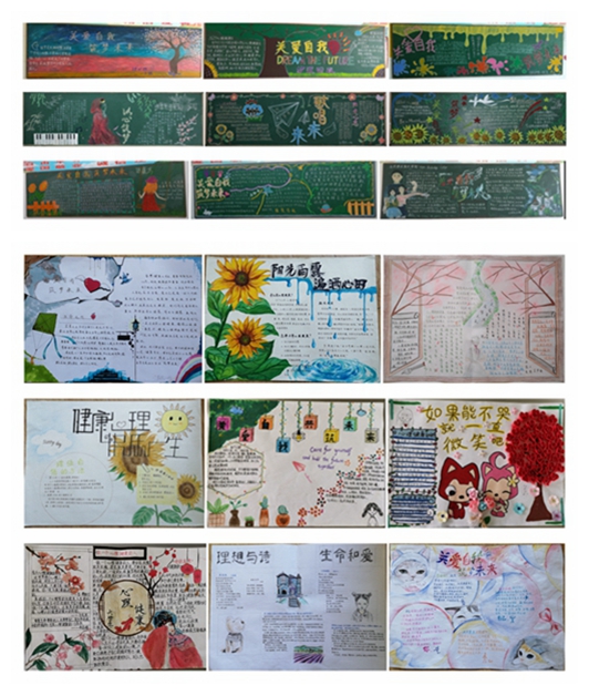 组织了心理健康主题黑板报评比活动和第五届校园心理健康手抄报创意大赛。通过班级的板报和手抄报优秀作品的展览,让同学们用自己的作品展示、宣传关爱自我、和谐健康的校园文化。